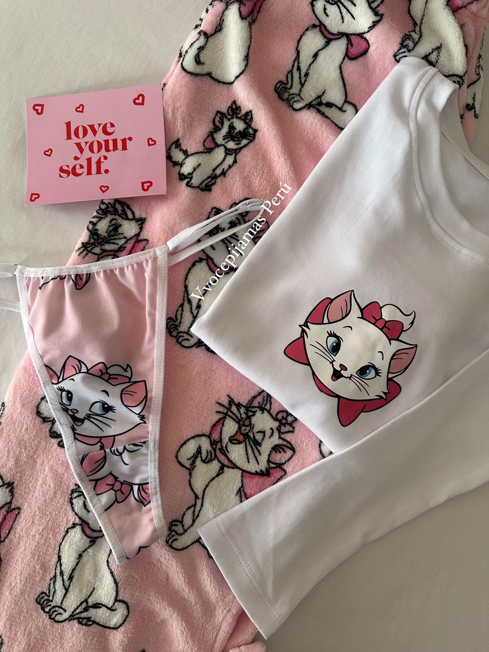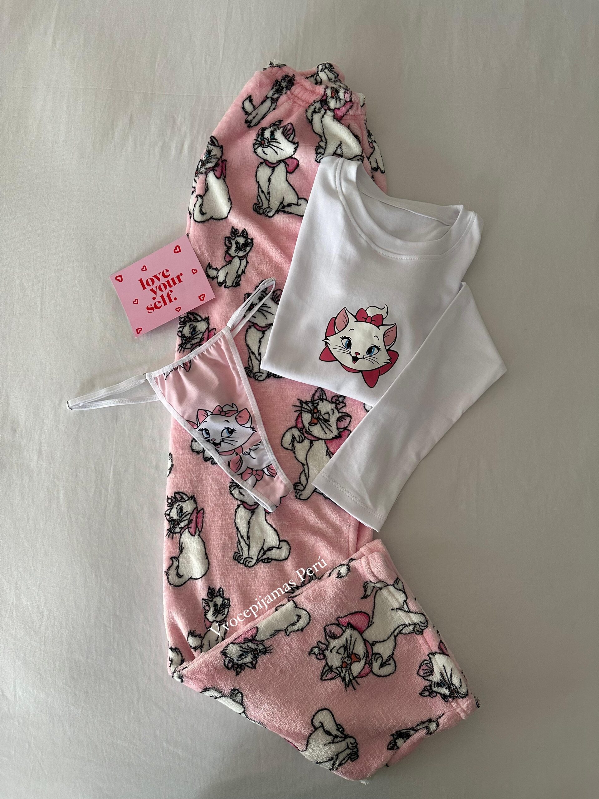 “Pijama Gata Marie en felpa súper abrigadora ❄️. Incluye polo manga larga de algodón + pantalón de felpa. Ideal para noches de invierno y para sentirse cute y cómoda.”